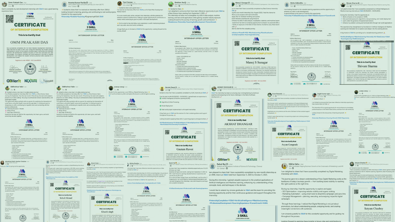 I started as a free intern and ended up getting a paid internship! 3Skill guided me step-by-step into Data Science and helped me land real projects.